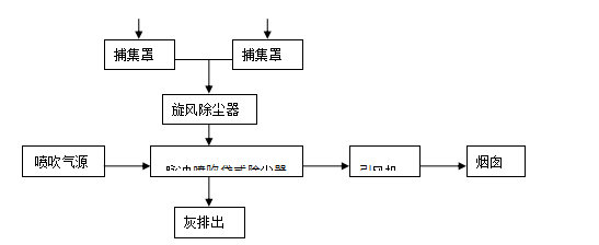 熔铝炉烟气经捕集罩至旋风除尘器,进行降温和沉降大颗粒粉尘,再进入布袋除尘器除器进行除尘后经过风机通过烟囱排入大气。