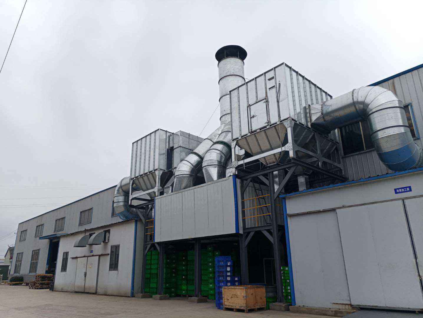 本焊烟除尘工程采用树状管网收集焊接车间多点烟气,具有烟气风量大,烟气浓度低,含油烟气易粘结滤袋等特点,我们在烟气捕集管网上运用计算机模拟设计,处理设备选用两台焊烟专用滤筒除尘器并联布置,既增强了收集效果,也降低了运行成本。