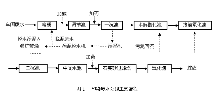 项目染料为阳离子染料,设计废水脱色放在生化处理的前面,采取加药絮凝沉淀的方式脱色、絮凝反应同时完成,同时可去除水中部分的色度、COD和SS等污染物。